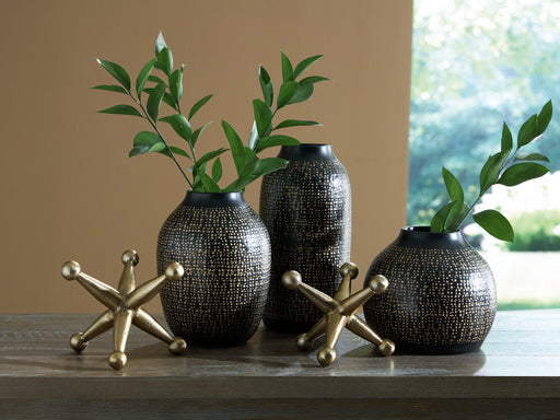 Elevate your decor with this striking accessory set. Its sleek black vases, adorned with delicate goldtone accents, are perfect for displaying your...