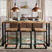 A minimalistic take on the industrial trend, this bar table is narrow and feature footrests on one side of its long edge and a pair of slender squared off U-shaped legs. Don't be deceived by its seemingly dainty stature--the solid wood top is made from Indian Rosewood, while the frame is made of welded sturdy steel.