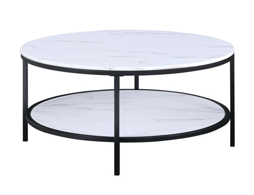 Contemporary White/Black Marble, Solid Wood, Engineered Wood Genuine Marble Table Top Casters on Rectangular Coffee Table Bottom Shelf