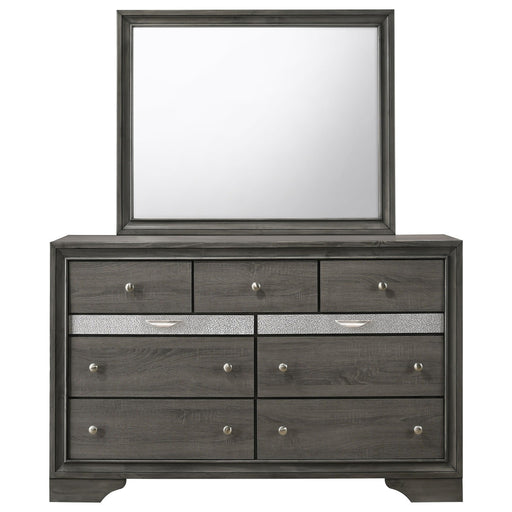 Sarter Collection by Crown Mark Weathered Gray finish Simple wood frame design Beveled glass